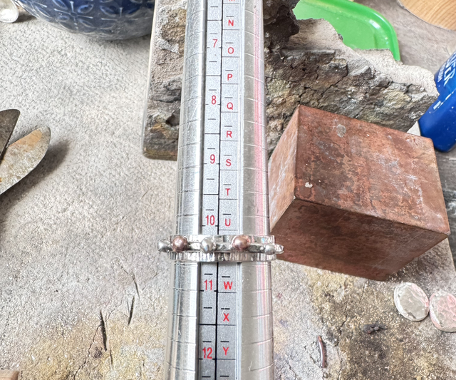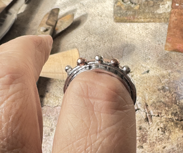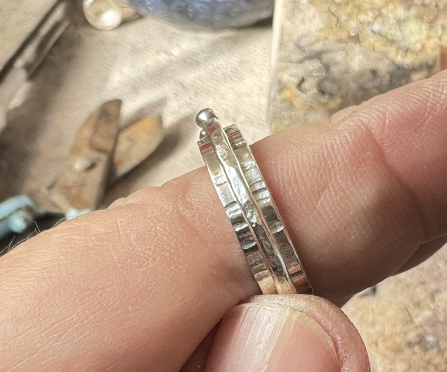 The second ring made from 1.8 mm wire is hammered.